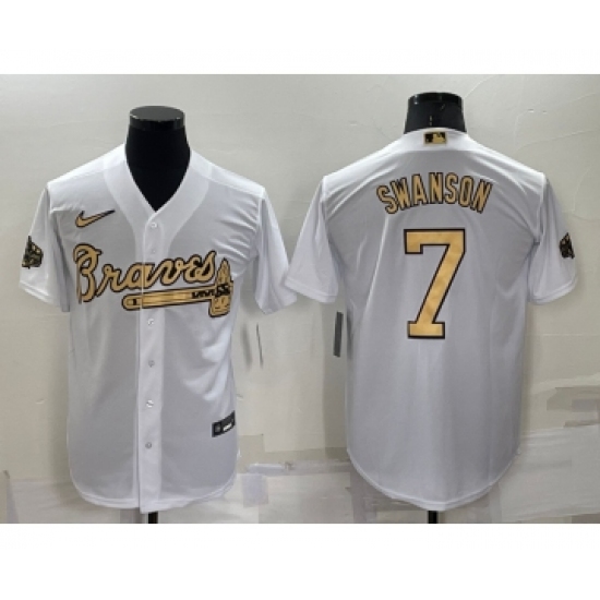 >Men's Atlanta Braves #7 Dansby Swanson White 2022 All Star Stitched Cool Base Nike Jersey