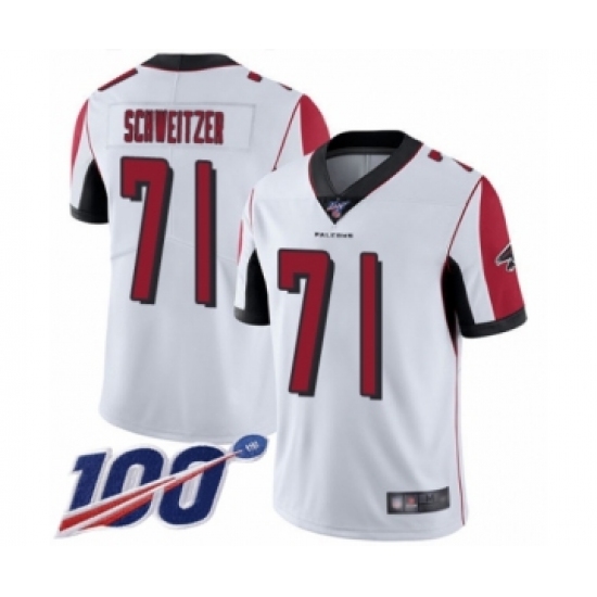 >Men's Atlanta Falcons #71 Wes Schweitzer White Vapor Untouchable Limited Player 100th Season Football Jersey