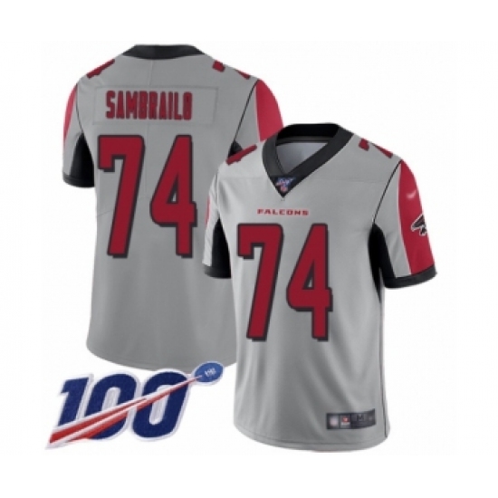 >Men's Atlanta Falcons #74 Ty Sambrailo Limited Silver Inverted Legend 100th Season Football Jersey