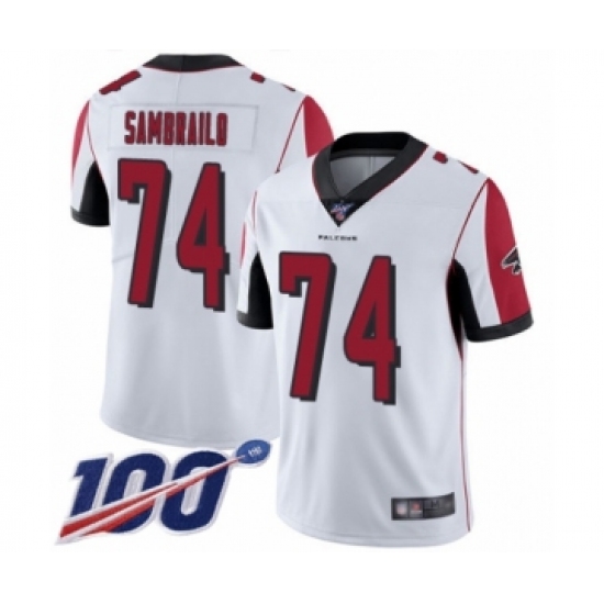 Men's Atlanta Falcons #74 Ty Sambrailo White Vapor Untouchable Limited Player 100th Season Football Jersey
