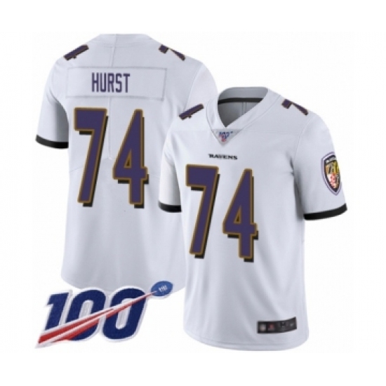 Men's Baltimore Ravens #74 James Hurst White Vapor Untouchable Limited Player 100th Season Football Jersey