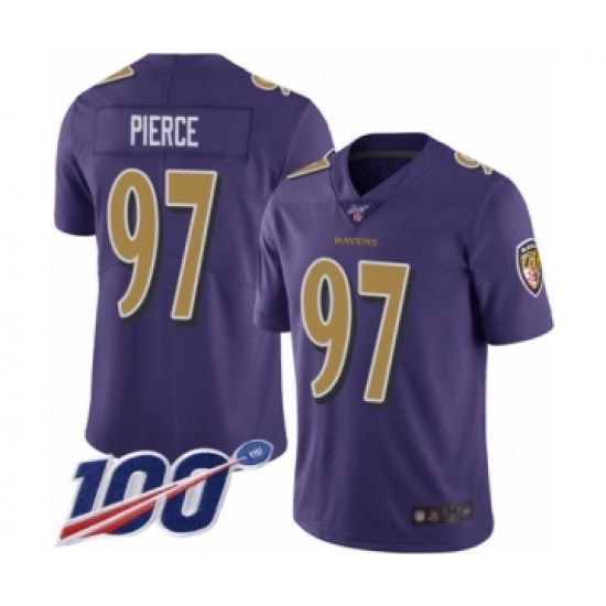 Men's Baltimore Ravens #97 Michael Pierce Limited Purple Rush Vapor Untouchable 100th Season Football Jersey