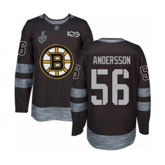 Men's Boston Bruins #56 Axel Andersson Authentic Black 1917-2017 100th Anniversary 2019 Stanley Cup Final Bound Hockey Jersey