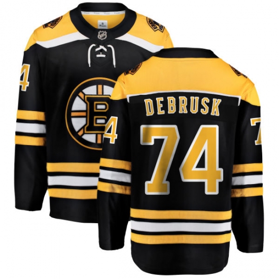 Home>NHL>Boston Bruins>Jake DeBrusk>Men's Boston Bruins #74 Jake DeBrusk Authentic Black Home Fanatics Branded Breakaway NHL Jersey