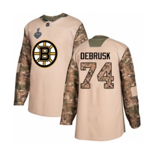 Men's Boston Bruins #74 Jake DeBrusk Authentic Camo Veterans Day Practice 2019 Stanley Cup Final Bound Hockey Jersey