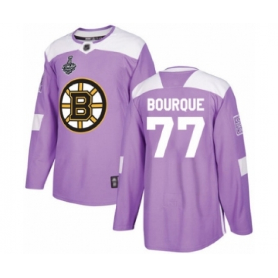 >Men's Boston Bruins #77 Ray Bourque Authentic Purple Fights Cancer Practice 2019 Stanley Cup Final Bound Hockey Jersey