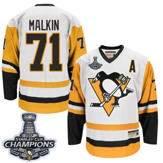 Men's CCM Pittsburgh Penguins #71 Evgeni Malkin Premier White Throwback 2017 Stanley Cup Champions NHL Jersey