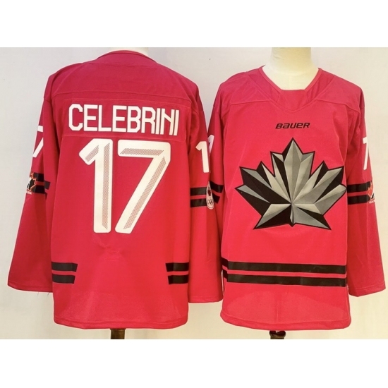 Men's Canada Hockey #17 Macklin Celebrini Red Stitched Jersey