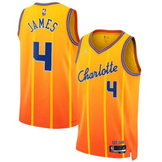 >Men's Charlotte Hornets #4 Sion James Gold 2025-26 City Edition Swingman Stitched Jersey