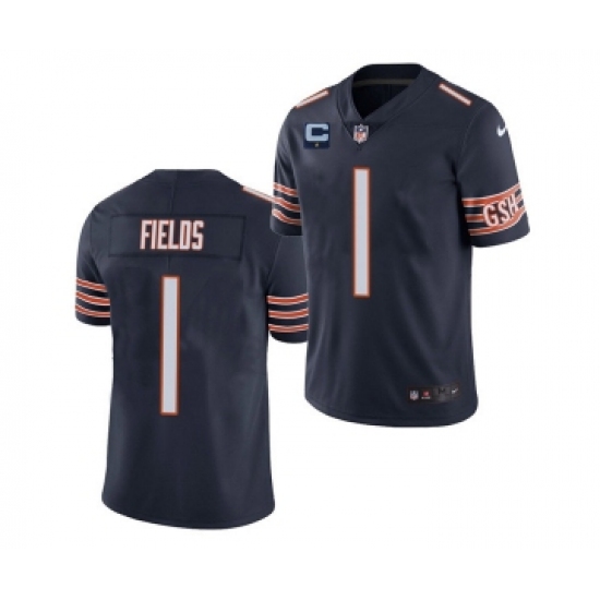 >Men's Chicago Bears 2022 #1 Justin Fields Navy With 1-star C Patch Vapor Untouchable Limited Stitched Jersey