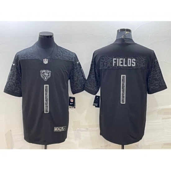Men's Chicago Bears Blank #1 Justin Fields Black Reflective Limited Stitched Football Jersey