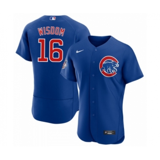 Men's Chicago Cubs #16 Patrick Wisdom Blue Flex Base Stitched Jersey