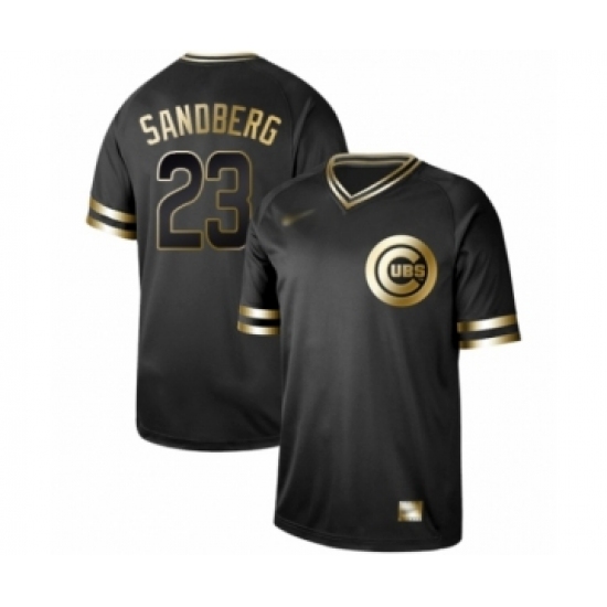 Men's Chicago Cubs #23 Ryne Sandberg Authentic Black Gold Fashion Baseball Jersey