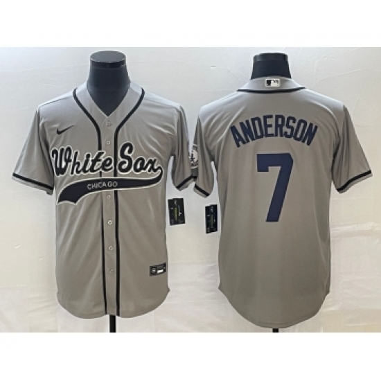 Men's Chicago White Sox #7 Tim Anderson Number Grey Cool Base Stitched Baseball Jersey