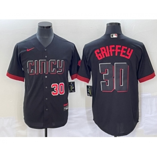 >Men's Cincinnati Reds #30 Ken Griffey Jr Number Black 2023 City Connect Cool Base Stitched Jersey1