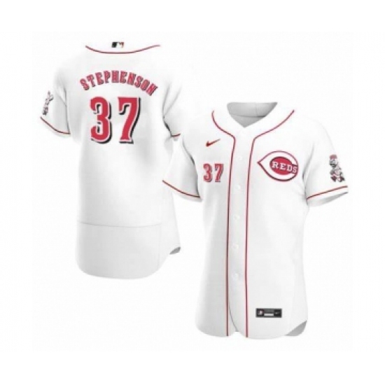 >Men's Cincinnati Reds #37 Tyler Stephenson White Stitched MLB Flex Base Nike Jersey