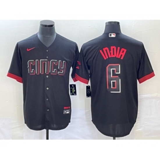 >Men's Cincinnati Reds #6 Jonathan India Black 2023 City Connect Stitched Jersey