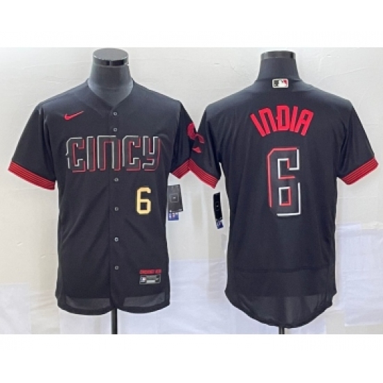 >Men's Cincinnati Reds #6 Jonathan India Number Black 2023 City Connect Flex Base Stitched Jersey