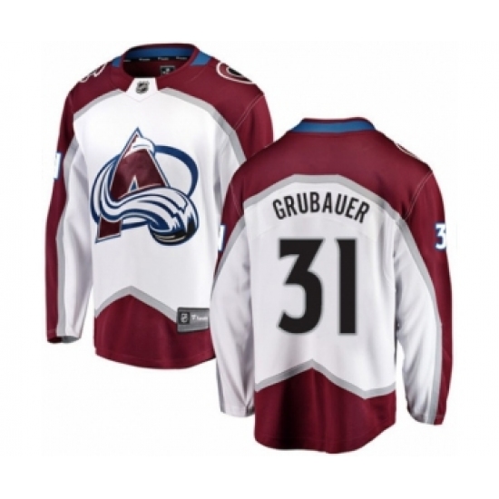 >Men's Colorado Avalanche #31 Philipp Grubauer Authentic White Away Fanatics Branded Breakaway NHL Jersey