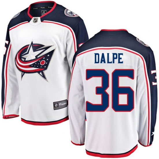 Home>NHL>Columbus Blue Jackets>Zac Dalpe>Men's Columbus Blue Jackets #36 Zac Dalpe Fanatics Branded White Away Breakaway NHL Jersey