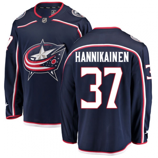 Home>NHL>Columbus Blue Jackets>Markus Hannikainen>Men's Columbus Blue Jackets #37 Markus Hannikainen Fanatics Branded Navy Blue Home Breakaway NHL Jersey