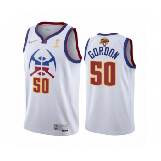 >Men's Denver Nuggets #50 Aaron Gordon White 2023 Finals Earned Edition Stitched Basketball Jersey