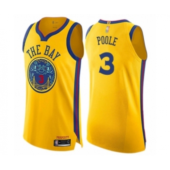 Men's Golden State Warriors #3 Jordan Poole Authentic Gold Basketball Jersey - City Edition