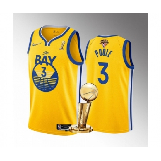 Men's Golden State Warriors #3 Jordan Poole Gold 2022 NBA Finals Champions Stitched Jersey