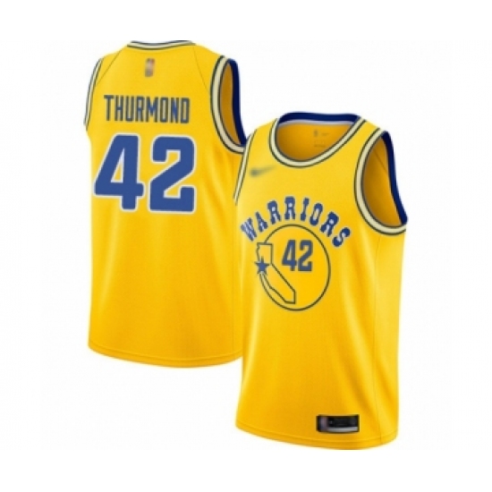 Men's Golden State Warriors #42 Nate Thurmond Authentic Gold Hardwood Classics Basketball Jersey