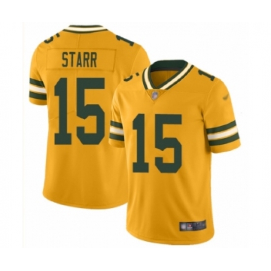 >Men's Green Bay Packers #15 Bart Starr Limited Gold Inverted Legend Football Jersey