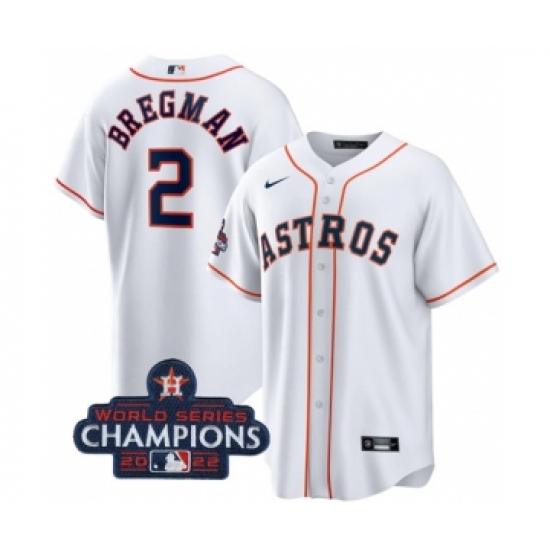 Men's Houston Astros #2 Alex Bregman White 2022 World Series Champions Home Stitched Baseball Jersey