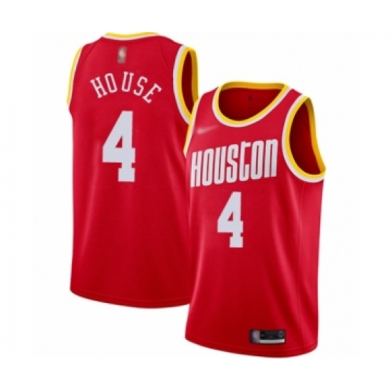 >Men's Houston Rockets #4 Danuel House Authentic Red Hardwood Classics Finished Basketball Jersey
