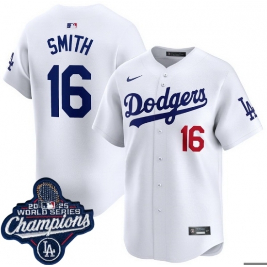 Men's Los Angeles Dodgers 16 Will Smith Cool Base 2025 World Champions Stitched Baseball Jersey White