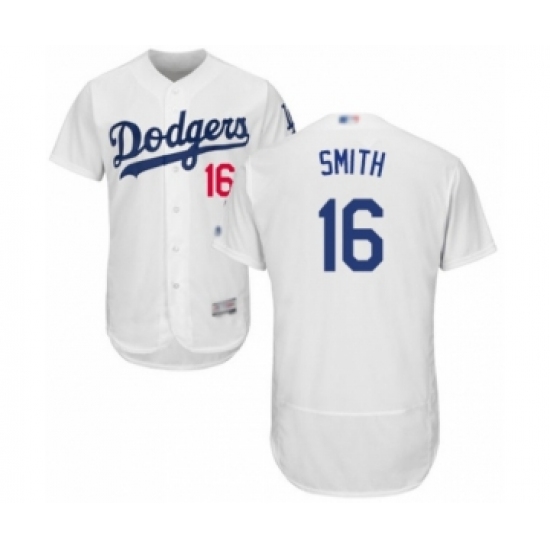 Men's Los Angeles Dodgers #16 Will Smith White Home Flex Base Authentic Collection Baseball Player Jersey