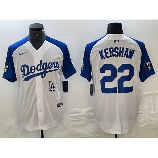 Men's Los Angeles Dodgers #22 Clayton Kershaw White Blue Fashion Stitched Cool Base Limited Jerseys