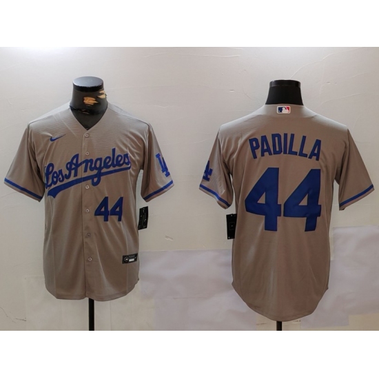 >Men's Los Angeles Dodgers #44 Vicente Padilla Number Grey With los Cool Base Stitched Jerseys