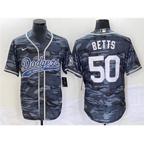 Men's Los Angeles Dodgers #50 Mookie Betts Gray Camo Cool Base Stitched Baseball Jersey