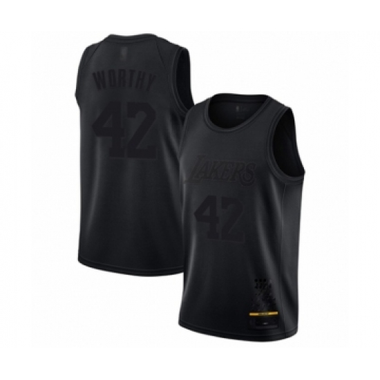 >Men's Los Angeles Lakers #42 James Worthy Swingman Black MVP Basketball Jersey