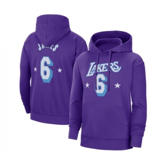 >Men's Los Angeles Lakers #6 LeBron James Purple Pullover Hoodie