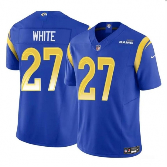 >Men's Los Angeles Rams #27 Tre'Davious White Blue 2024 F.U.S.E. Vapor Untouchable Football Stitched Jersey