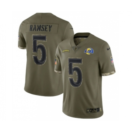 Men's Los Angeles Rams #5 Jalen Ramsey 2022 Olive Salute To Service Limited Stitched Jersey