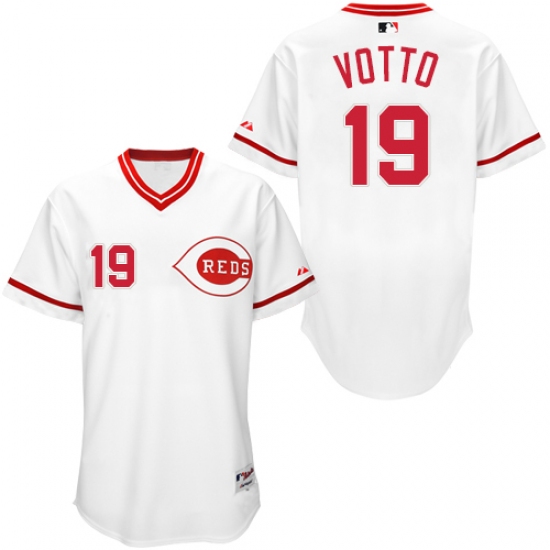 Home>MLB>Cincinnati Reds>Joey Votto>Men's Majestic Cincinnati Reds #19 Joey Votto Replica White 1990 Turn Back The Clock MLB Jersey