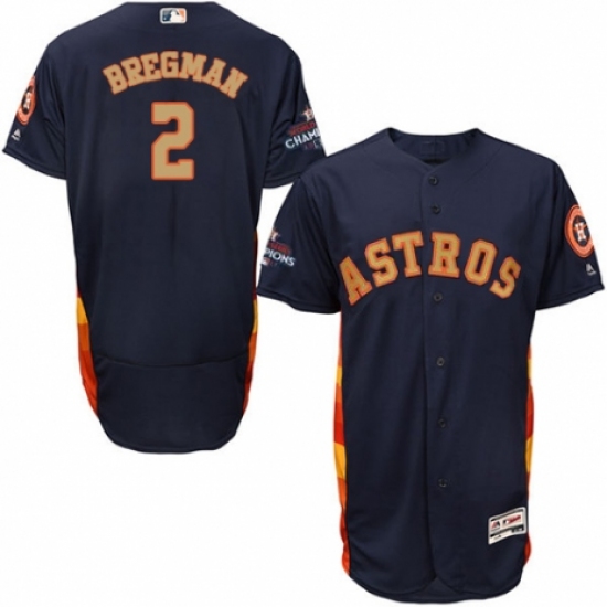 Men's Majestic Houston Astros #2 Alex Bregman Navy Blue Alternate 2018 Gold Program Flex Base Authentic Collection MLB Jersey