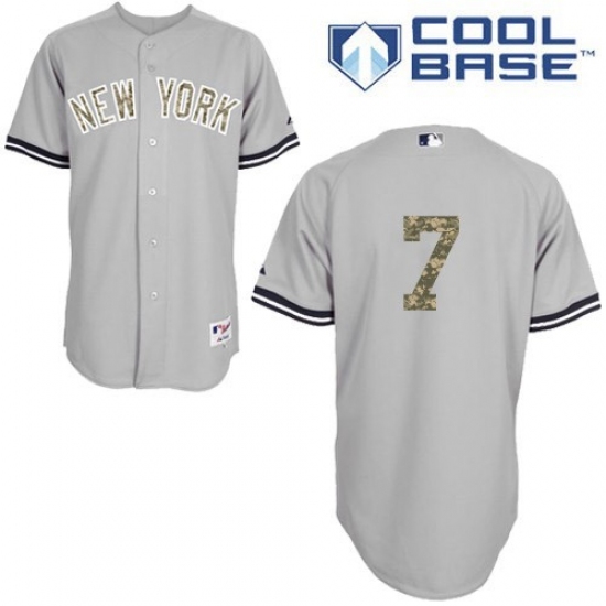 Home>MLB>New York Yankees>Mickey Mantle>Men's Majestic New York Yankees #7 Mickey Mantle Authentic Grey USMC Cool Base MLB Jersey