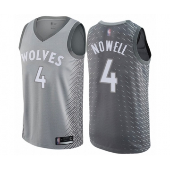 >Men's Minnesota Timberwolves #4 Jaylen Nowell Authentic Gray Basketball Jersey - City Edition