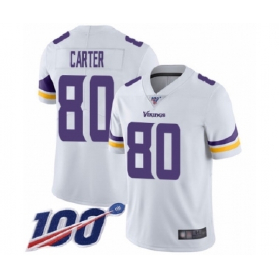 Men's Minnesota Vikings #80 Cris Carter White Vapor Untouchable Limited Player 100th Season Football Jersey