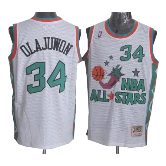 Men's Mitchell and Ness Houston Rockets #34 Hakeem Olajuwon Authentic White 1996 All Star Throwback NBA Jersey