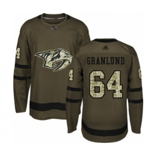 >Men's Nashville Predators #64 Mikael Granlund Authentic Green Salute to Service Hockey Jersey