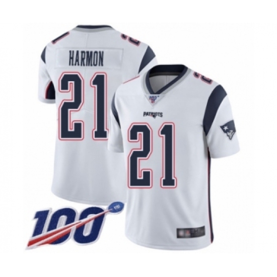 Men's New England Patriots #21 Duron Harmon White Vapor Untouchable Limited Player 100th Season Football Jersey