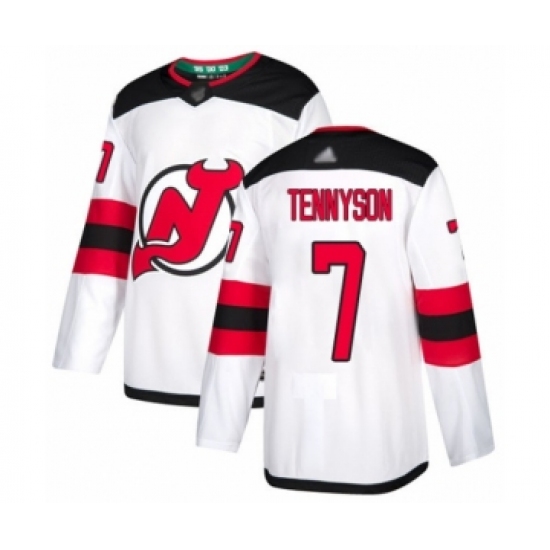 >Men's New Jersey Devils #7 Matt Tennyson Authentic White Away Hockey Jersey
